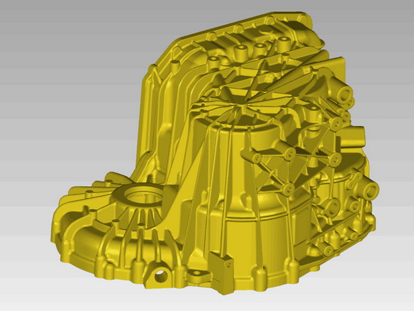 變速箱殼體的加工質(zhì)量直接影響變速箱內(nèi)部部件的精度、性能和壽命。因此,汽車變速箱殼體的質(zhì)量把控對汽車的性能、質(zhì)量與安全尤為重要。然而,汽車變速箱蓋外表輪廓結(jié)構(gòu)極為復(fù)雜,凹凸曲面非常多,傳統(tǒng)的檢測方式工作量非常大、耗時(shí)且不精準(zhǔn)。三維掃描儀的出現(xiàn)顛覆了變速箱殼體檢測過程,大大提升了變速箱殼體檢測的效率。